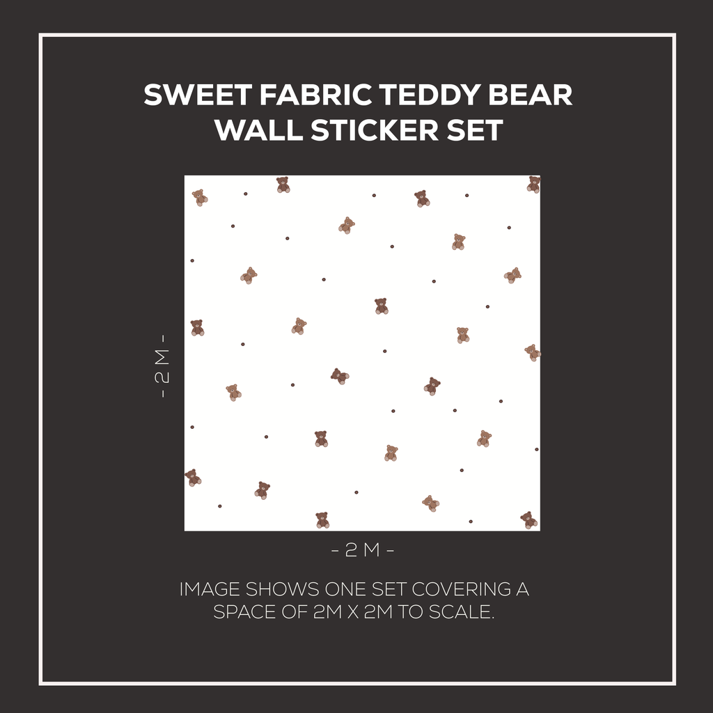 A pack of sweet fabric teddy bear wall stickers, perfect for children's bedrooms or playrooms.